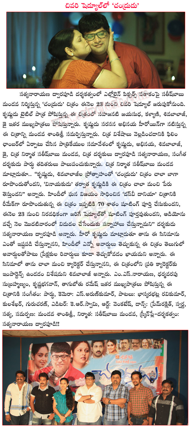 chandrudu movie, chandrudu movie press meet, chandrudu movie details, chandrudu movie release date, krishnudu chandrudu movie, jayasudha, abhinaya, sivabalaji, chandrudu movie details, chandrudu telugu movie, chandrudu movie review, chandrudu movie shooting details