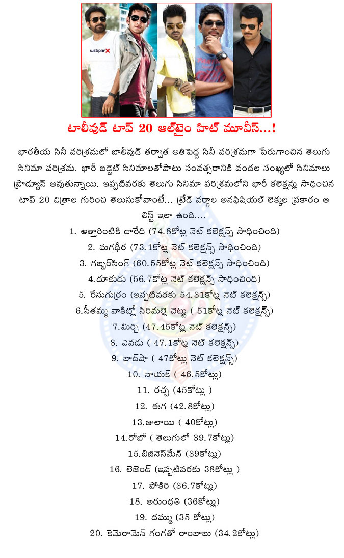 tollywood top 20 movies collections, tollywood movies, attarintiki daaredi movie, svsc, magadheera, race gurram, yevadu, tollywood top 20 movies list, 2014