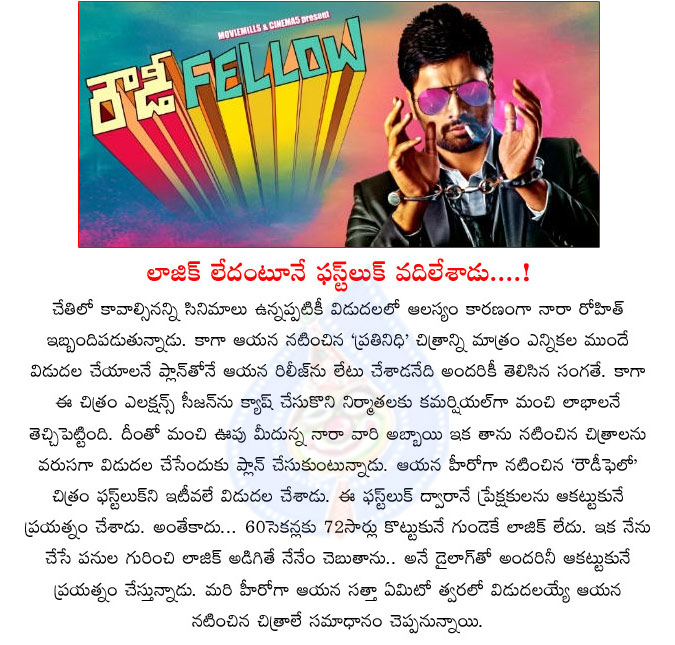 rowdy fellow, rowdy fellow movie 1st look teaser, no logic, heart beat, nara rohit, nara rohith new movie, rowdy fellow movie updates