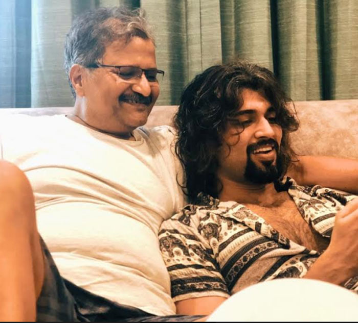 అయితే నిన్న ఆదివారం ఫాదర్స్ డే సందర్భంగా విజయ్ దేవరకొండ తన తండ్రితో ఉన్న పిక్ ఒకటి పోస్ట్ చేసి ఫాదర్స్ డే విశెష్ చెప్పాడు. అయితే ఆ పిక్ లో విజయ్ దేవరకొండ లుక్ కాస్త డిఫరెంట్గా కనబడుతున్నాడు. విజయ్ దేవరకొండ హెయిర్ బాగా పెంచెయ్యడమే కాదు... ఓ డిఫ్రెంట్ గెడ్డం లుక్ లో కొత్తగా కాస్త విభిన్నంగానే కనబడుతున్నాడు. ఫైటర్ లుక్ లో మంచిగా కనబడిన విజయ్ దేవరకొండ ఇప్పుడు ఈ కొత్త లుక్ చూసి ఆయన అభిమానులే ఏంది భయ్యా ఈ లుక్ అంటున్నారు. హెయిర్ బాగా పెరిగి, ఫ్రెంచ్ ట్యాప్ గెడ్డంతో కనబడుతున్న విజయ్కి ఆ లుక్ అంతగా నప్పలేదు.. కానీ లాక్ డౌన్ వలన విజయ్ ఇలా కొత్తగా మేకోవర్ అయ్యి తన లుక్ ని బయటికి వదిలినట్టుగా అనిపిస్తుంది. మరి విజయ్ - పూరి కాంబో టైటిల్ త్వరలోనే అంటూ మూవీ టీం ఎప్పటికప్పుడు ఊరిస్తున్నారు. ఆ టైం ఎప్పుడు వస్తుందో చూడాలి.