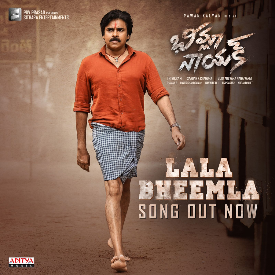 లాలా భీమ్లా అడవి పులి గొడవ పడి ఒడిసి పట్టు దంచి కొట్టు కత్తి పట్టు అదరగొట్టు భీమ్లా నాయక్ పోరాట గీతం ఇది