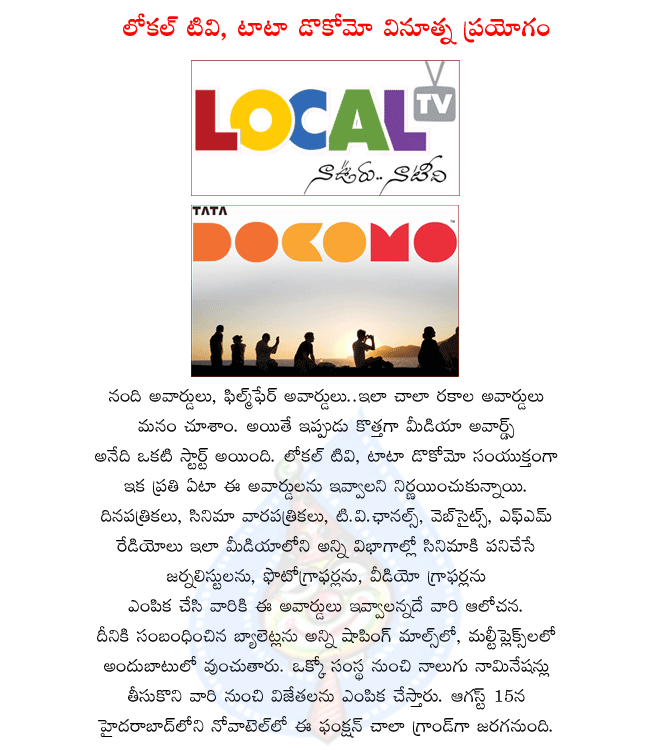 local tv media awards, tata docomo media awards, the best telugu film website, the best telugu film reviewer, the best telugu tv channel, the best telugu daily paper, the best telugu film weekly, the best film journalist