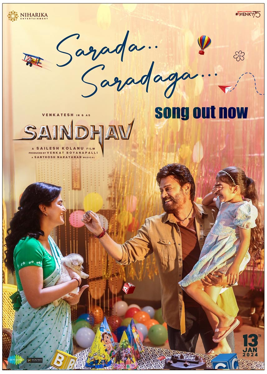Sarada Saragada from Saindhav released. Venkatesh's highly anticipated 75th film, "Saindhav," is surging ahead with remarkable momentum, guided by the directorial finesse of Sailesh Kolanu.
